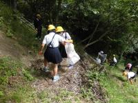 今日は、さらにふかふかになるように、4年生・5年生が、たくさんの草を運び、積み重ねていきました。